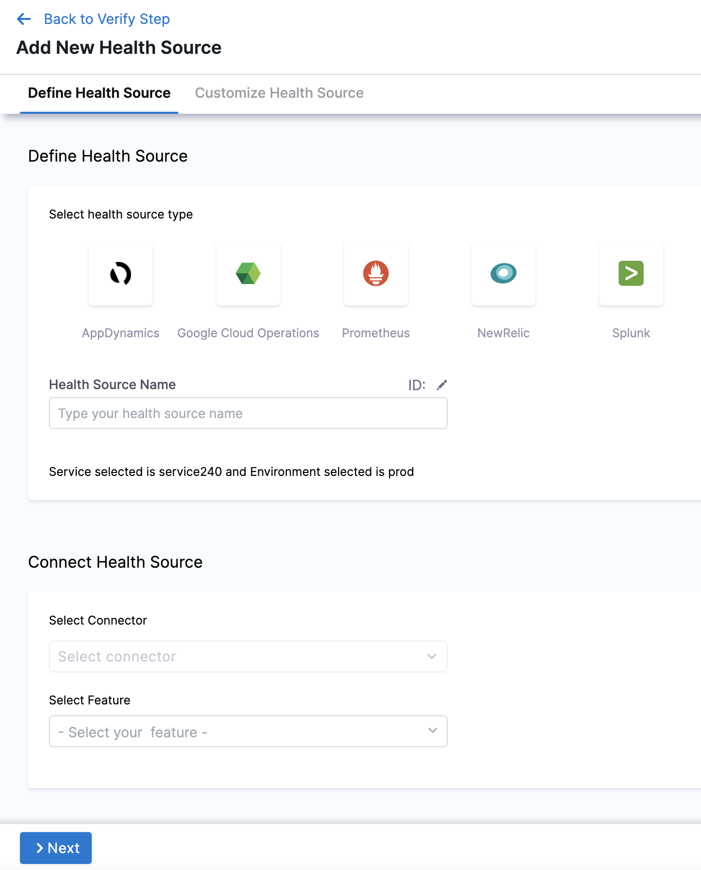 Click Next. The Customize Health Source settings appear.