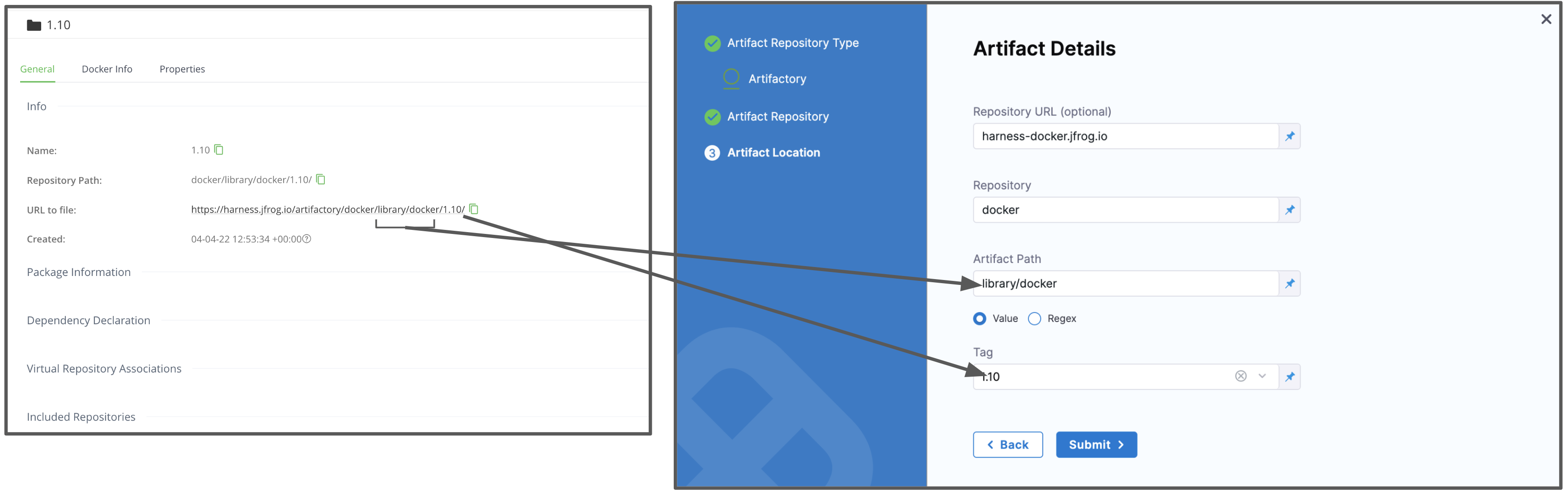 • Repository URL: Go to Artifactory Repository URL.
