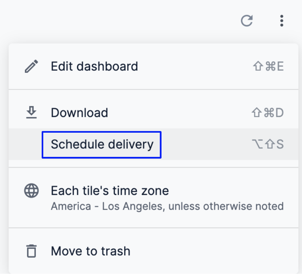 1. Click the three-dot menu in the upper right of the dashboard and select Schedule delivery.