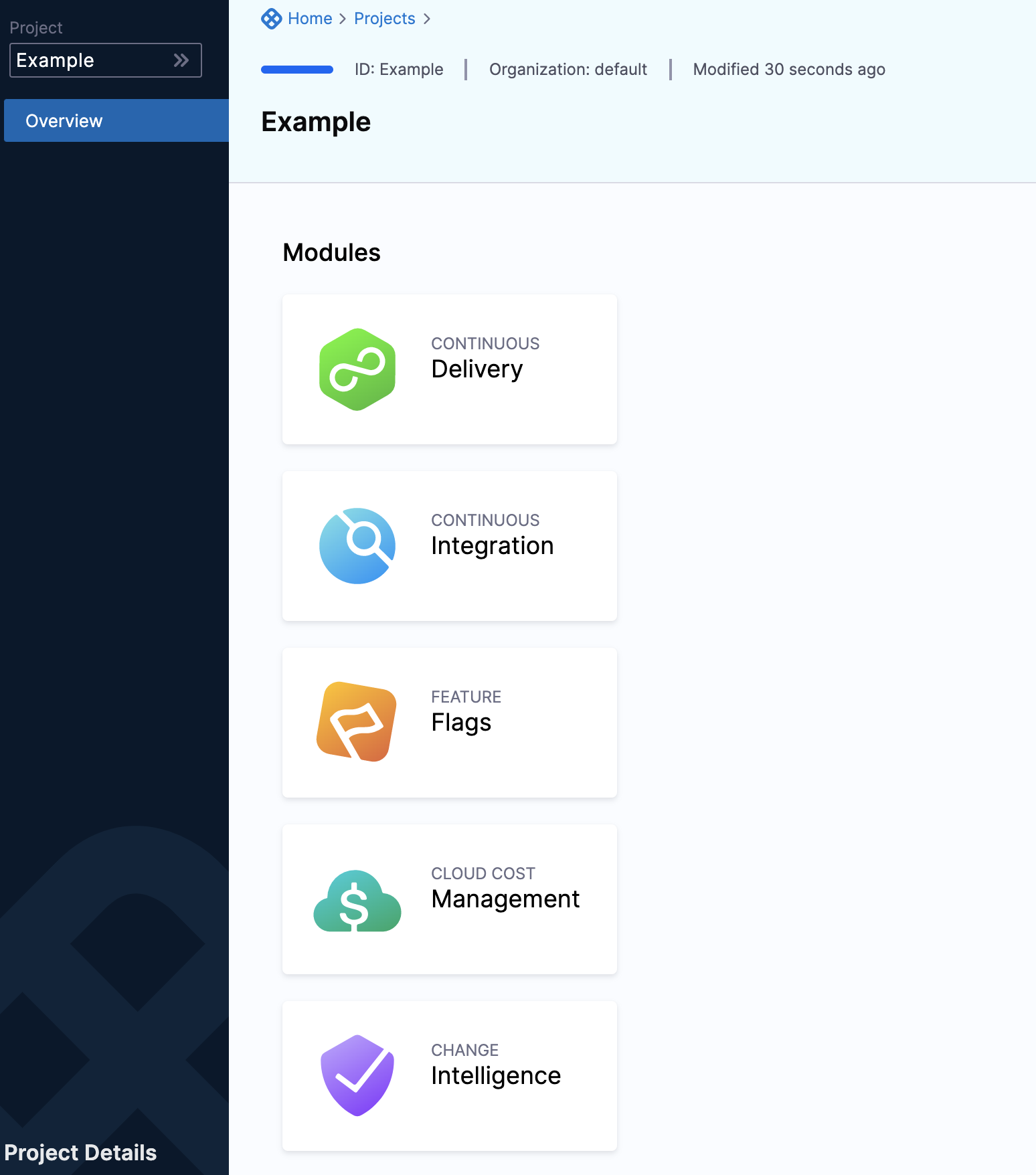 1. In Harness, go to Home and click Projects.
