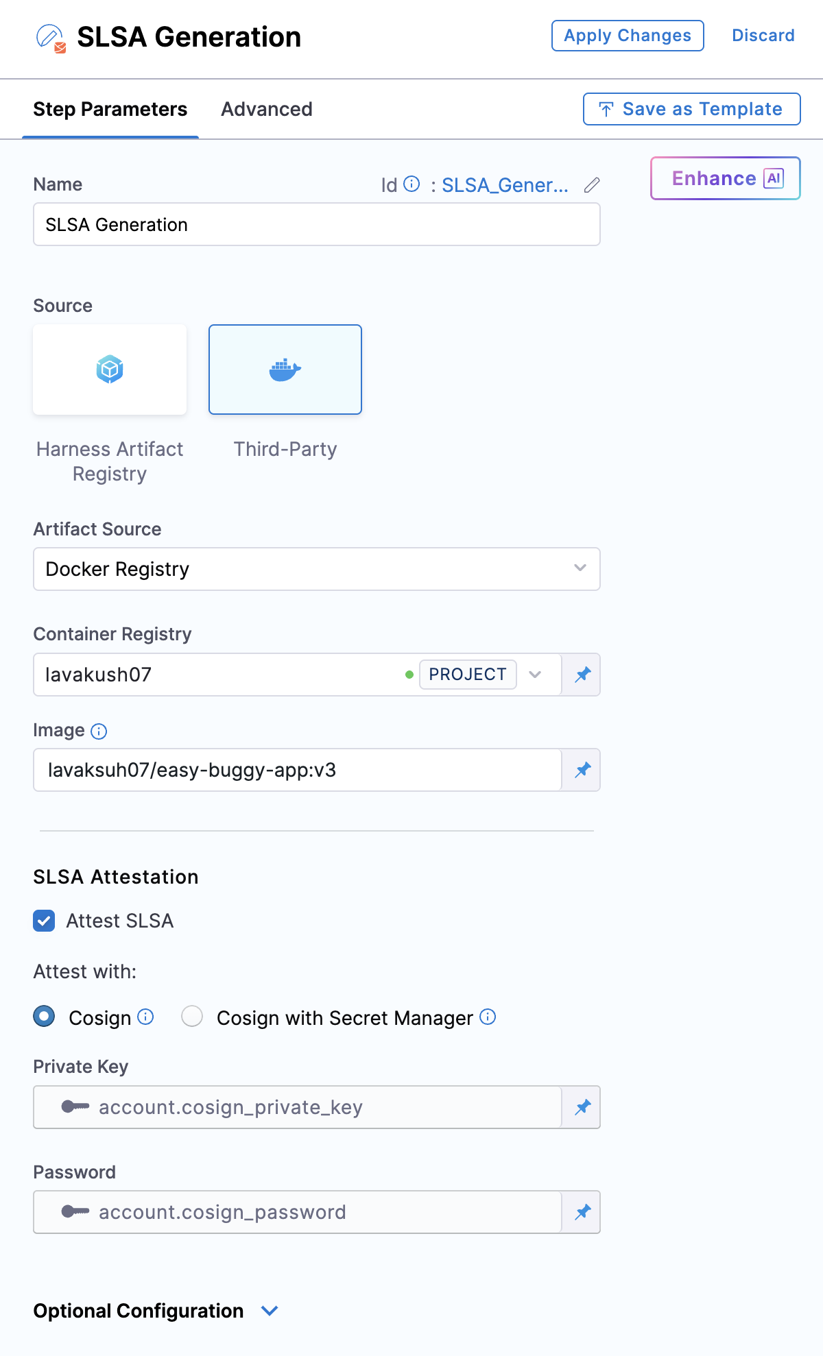 Follow the instructions below to configure the SLSA Generation step.